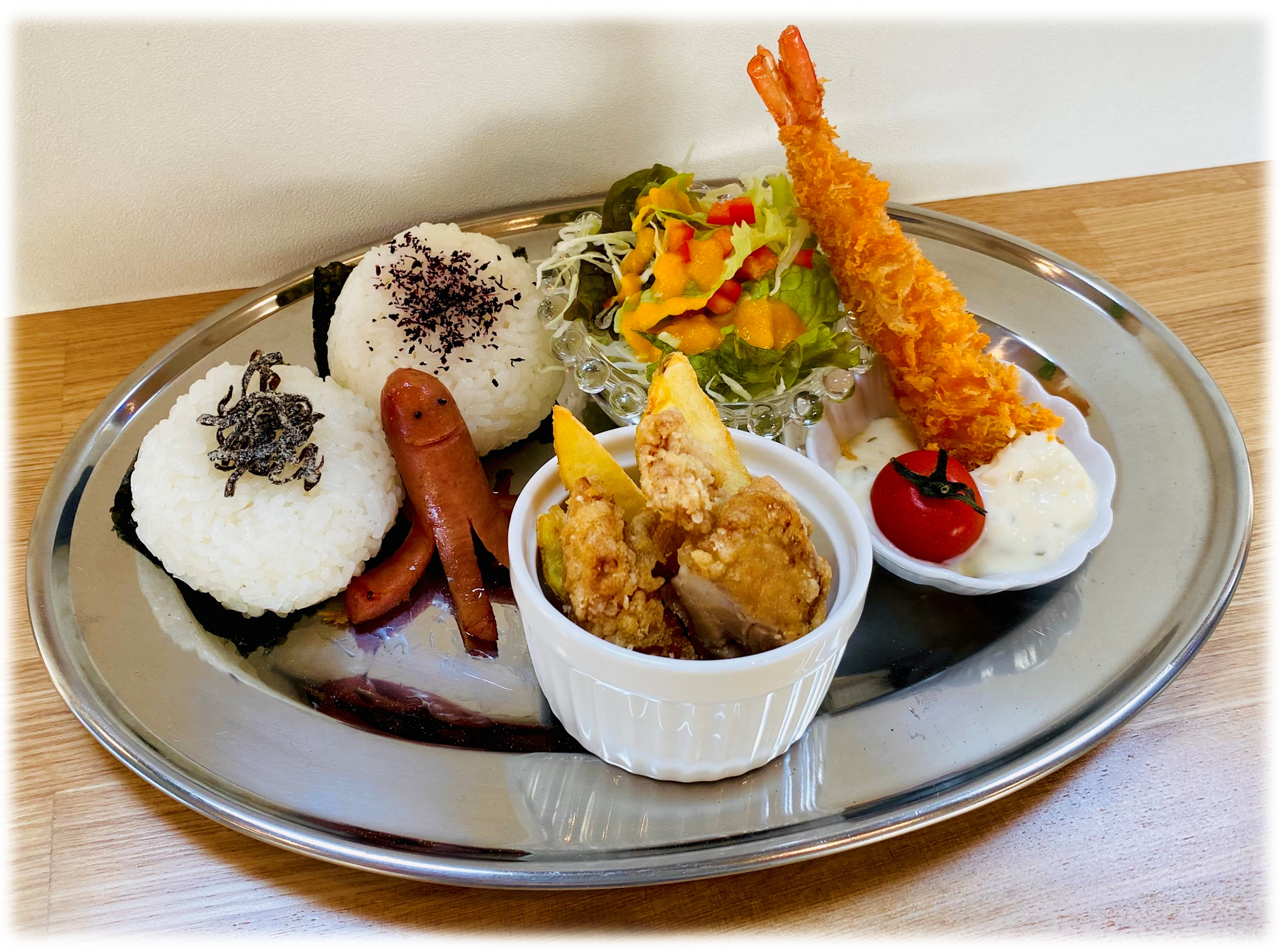 選べる揚げ物とおにぎりのランチ (唐揚げ・エビフライ・カキフライ) |